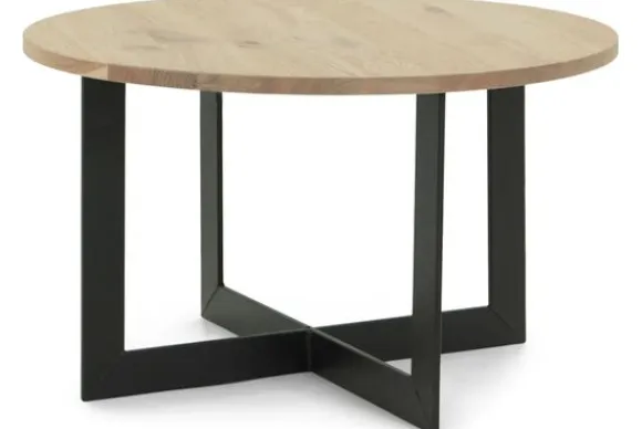 Salontafel Manifest van het merk Van Dijk Furniture heeft een rond tafelblad van 100% massief eikenhout. Door het natuurlijke materiaal is geen enkel exemplaar hetzelfde, wat elke tafel een uniek karakter geeft.