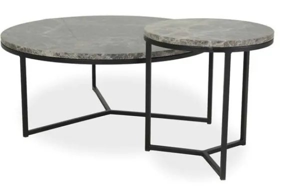Salontafelset Jacava van het merk BL Design is beschikbaar in verschillende materialen en kleuren en verschillende pootkleuren. Deze set bestaat uit twee tafels met de volgende afmetingen: B80 x D80 x H30 cm en B40 x D40 x H40 cm. Marmer is een duurzame steensoort en heeft een luxe en stijlvolle uitstraling. De steensoort is een natuurproduct en kenmerkt zich door de unieke afwerkingen en kan zowel grove als gladde delen bevatten. Door de kenmerkende kleurschakeringen en aders is geen product hetzelfde. Zo haal je met een marmer product dus echt iets unieks in huis.