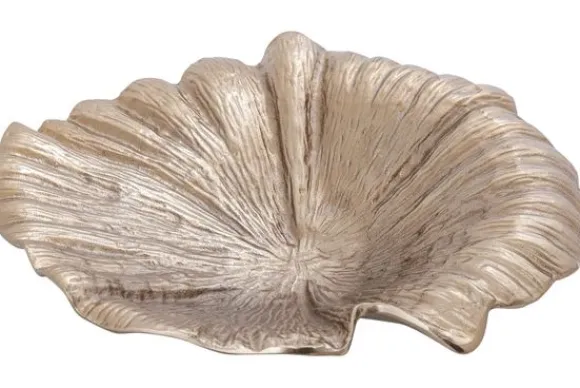 Deze schaal is gemaakt van aluminium metaal en afgewerkt in een verfijnde bruin goudtint. Het metaal zorgt voor een stevige kwaliteit terwijl de afwerking een chique en decoratief accent toevoegt aan het interieur.