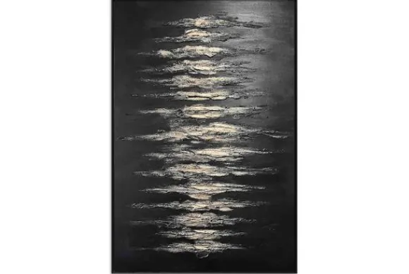 Schilderij Moonlit Waves OAF-019 van het merk Luxe Framing Art is een modern kunstwerk met gouden reliëflijnen op een zwarte achtergrond. Dit schilderij is direct uit voorraad leverbaar.