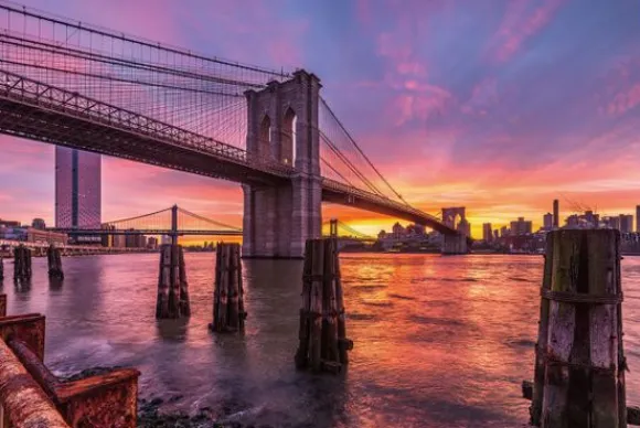 Glasschilderij Brooklyn Bridge NYC van het merk Ter Halle is een adembenemend kunstwerk van 160 cm breed en 110 cm hoog.