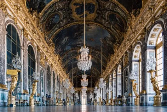 Schilderijen-Ter Halle Glasschilderij Paleis met Kroonluchters 1101603D-003