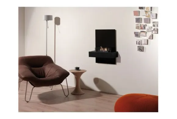 Deze haard wordt standaard uitgevoerd met een zwart glazen paneel en een bio ethanol brander.