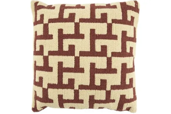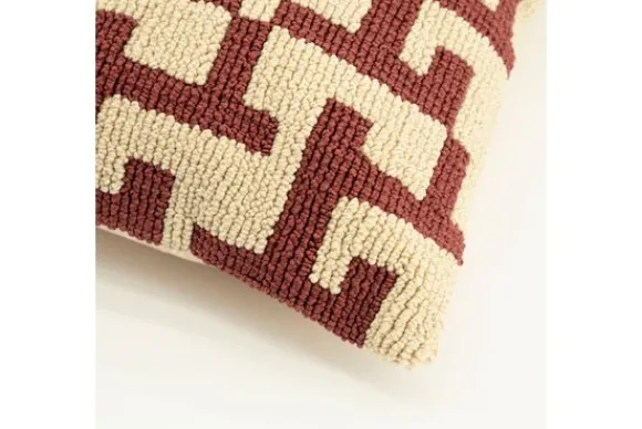 Sierkussen Ziggy 250103 burgundy van By Boo is 50 bij 50 cm en is beschikbaar in vier verschillende kleuren. Het kussen is voorzien van een opvallend grafisch patroon in een diepe bordeauxrode tint op een crèmekleurige basis, wat zorgt voor een verfijnde en tijdloze uitstraling.