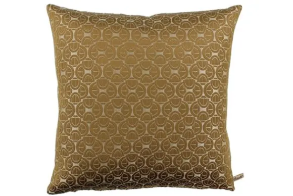 Met een afmeting van 50 x 50 cm en inclusief binnenkussen brengt dit sierkussen niet alleen comfort, maar vooral karakter. De diepe koperkleurige velvet basis straalt warmte en elegantie uit, terwijl het rijke borduursel in een geometrisch cirkelpatroon zorgt voor een boeiend reliëf dat doet denken aan art deco-motieven. De subtiele glans van de stof en het garen vangt het licht op een manier die het patroon tot leven wekt.