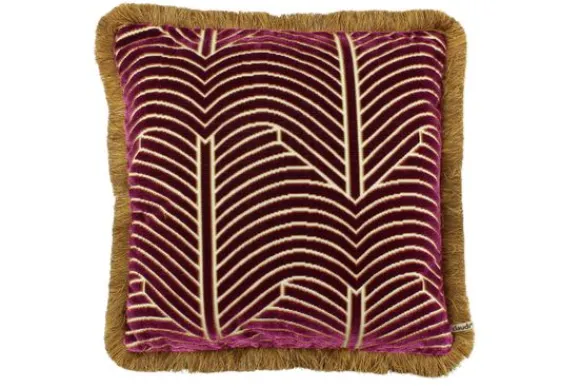 Sierkussen Otto Pink + Fringe Dark Gold valt direct op in uiterlijk. Met magenta tinten, gouden franjes en een uniek patroon is dit een echte sfeermaker en sluit perfect aan op bohemian en eclectische interieurs.