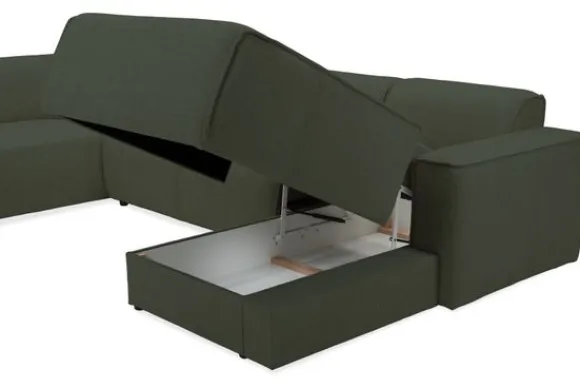 In de 2 en 2,5 zitelementen kan een uitschuifbare zitting worden ingebouwd, waarmee je moeiteloos extra lounge- of slaapcomfort creëert. Ideaal voor wanneer je gasten ontvangt. Daarnaast zit er in de grote maat longchair een verborgen opbergruimte. Deze slimme toevoeging zorgt ervoor dat je plaids, kussens of andere woonaccessoires stijlvol uit het zicht kunt bewaren, zonder in te leveren op design.