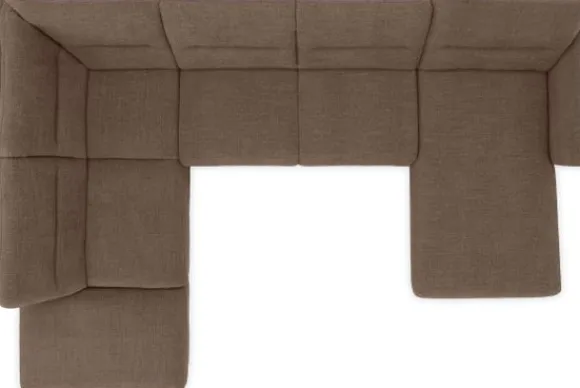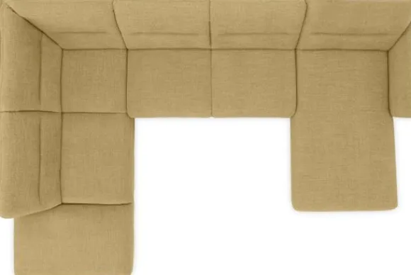 De bank is opgebouwd uit verschillende losse elementen. Hierdoor kan de bank volledig naar wens worden samengesteld. Je kunt ook kiezen voor een van de standaard opstellingen. Bij het samenstellen van de bank kan bovendien een bijpassende hocker worden toegevoegd in hetzelfde materiaal als de bank.