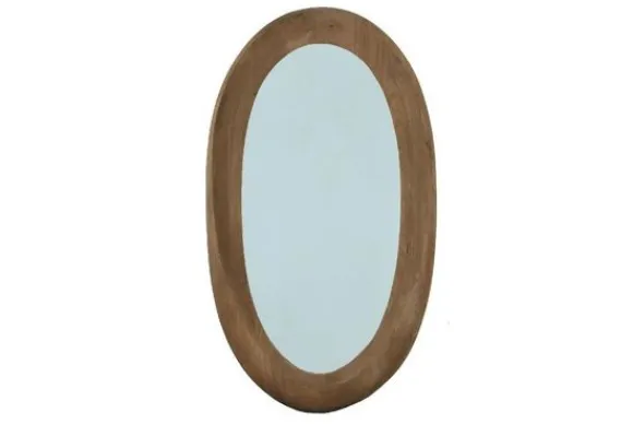 Spiegel Noam is een ovale wandspiegel met een lijst van mangohout die een warme en natuurlijke uitstraling heeft.
