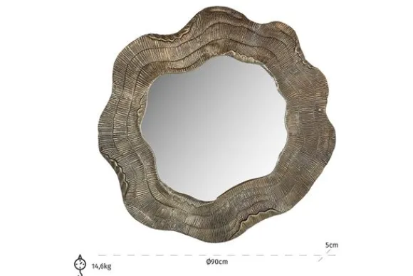 Spiegel Elia 211854 van het merk Richmond Interiors is gemaakt van aluminium en MDF. De spiegel is goudkleurig en heeft een ronde organische vorm. Hang de spiegel in de hal of woonkamer als mooi decoratief item in je interieur.