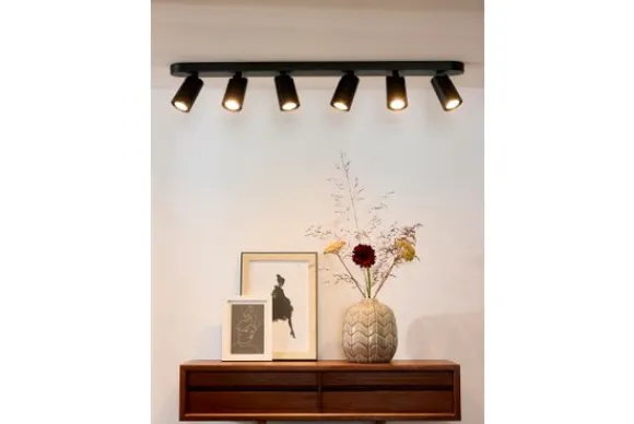 Plafondspot Xyrus van het merk Lucide is een combinatie van led-spots die erg geliefd is in slaapkamers, maar ook woonkamer en inkomhallen verwelkomen Xyrus met plezier. Je stuurt deze dimbare spots zelf aan: de lichtbronnen zijn 360 graden draai en kantelbaar. De zes GU10-fittings zijn voorzien van DIM TO WARM led-lampen. Heb je zin in een romantische avond? Je sluit deze armatuur eenvoudig en snel aan op een externe dimmer.