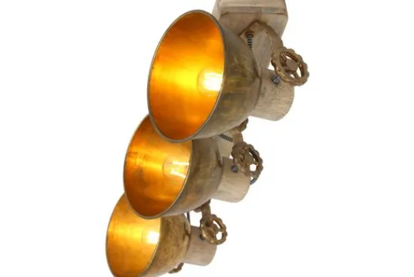 Plafondlamp Gearwood 2133A uit de serie Mexlite van het merk Steinhauer is een bronskleurige 3-lichts plafondlamp. Deze industriële lamp is draaibaar en kantelbaar door middel van de grote verstel wielen. De lamp heeft een E27 fitting en is geschikt voor alle lichtbronnen tot maximaal 40 Watt. De lamp is dimbaar door middel van een externe dimmer en geschikte lichtbron. Deze zijn niet meegeleverd. De lamp is vervaardigd uit metaal met houten accenten en heeft een bronzen reflector. De diameter van de kap is 15 centimeter en de totale hoogte van het armatuur is 19 centimeter.