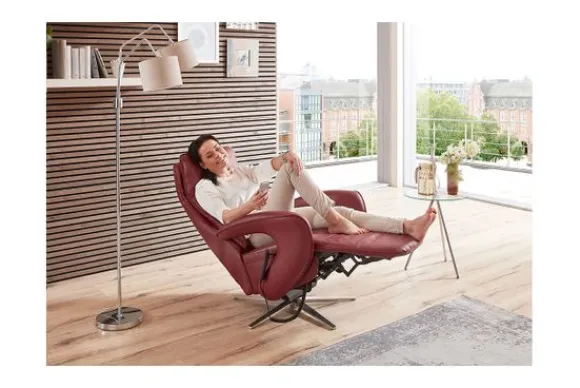 De fauteuil wordt standaard geleverd met zwart metalen stervoet en een handmatig relaxsysteem, optioneel zijn een elektrische relax en vele andere mogelijkheden. Het handmatige relaxsysteem heeft een hendel tussen de zitting en armleuning, wanneer je deze naar achter duwt kun je met jouw rug de rugleuning naar achteren duwen. De voetensteun schuif je uit door jezelf in de stoel naar achteren te duwen.
