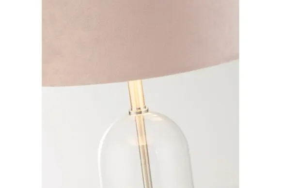 Tafellamp Oxford EU81713PI van het merk Searchlight is een luxueuze lamp met een metalen voetstuk dat in een glazen stolp zit. De lampenkap is van lichtroze velvet, de binnenkant is zilver gekleurd voor een elegant effect.