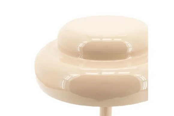 Deze lamp is vervaardigd uit gecoat en geglazuurd ijzer in een warme beige tint, wat zorgt voor een subtiele glans en een verfijnde luxe. De ronde vormen en het compacte silhouet geven het ontwerp een eigentijdse elegantie.