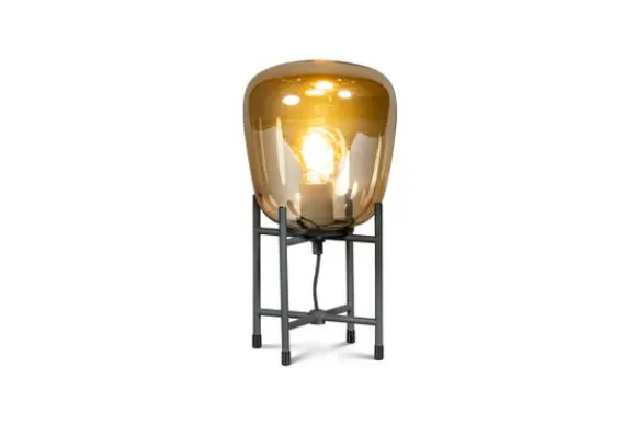 Tafellamp Benn Gold van het merk ETH is niet alleen mooi wanneer hij brand. Overdag is het ook zeker een plaatje om naar te kijken. De grote lampenkap is voorzien van donker goudkleurig glas wat rust op een metalen frame met een zwarte poedercoating. Door het gekleurde glas geeft de lichtbron sfeervol licht, waardoor het licht niet te fel is.