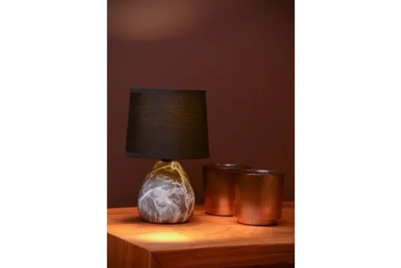 Tafellamp Marmo van het merk Lucide is tijdloos en elegant. Met een marmeren look geef je je interieur meteen dat extra stijlvolle tintje. Met deze keramische tafellamp krijg je hetzelfde effect. De linnen kap vangt het licht en creëert een speelse schijn op de donkere nerven van de poot.