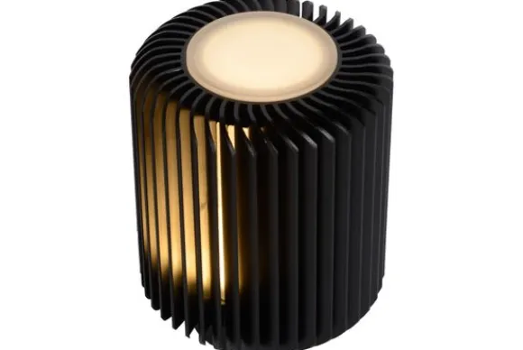 Tafellamp van het merk Lucide is een schattige tafellamp met een moderne cilinder van amper meer dan 10 centimeter breed, lang en hoog. De geïntegreerde ledverlichting verspreidt het licht rondom, door de kieren van het aluminium omhulsel. Geheel in de lijn van zijn compact formaat, is de tafellamp makkelijk te installeren: je stopt enkel het snoer in het stopcontact en schakelt de lamp aan of uit met de knop op de lamp.