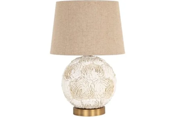 De ronde voet is rijk gedecoreerd met bloemen, gemaakt van echte schelpen. De warme crèmekleurige kap zorgt voor zacht en gezellig licht, perfect voor een knusse hoek in huis. De goudkleurige voet geeft een stijlvol tintje dat meteen opvalt.