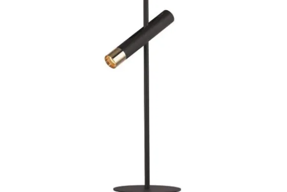 Tafellamp Cylinder 31653-1BK van het merk Searchlight is een moderne tafellamp. De lamp is gemaakt van metaal in de kleur zwart en het uiteinde van de lampfitting is goudkleurig. De lamp is voorzien van een LED lichtbron. Deze stijlvolle tafellamp is verstelbaar en past perfect bij een moderne of industriële inrichting. Deze lamp is ook verkrijgbaar als vloerlamp.