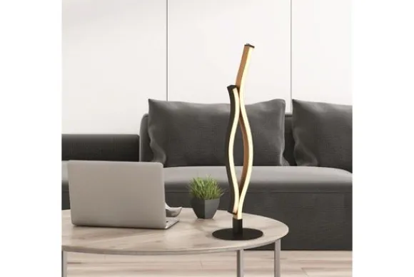 Tafellamp Bloom Swirl 32101-1BK van het merk Searchlight is een chique tafellamp met touch. De tafellamp is een eigentijdse combinatie van zwart metaal en hout. De wervelende lijnen van deze LED vloerlamp zorgen ervoor dat het licht op een unieke wijze door de kamer wordt verspreid. De lamp is voorzien van een three-stage dimmer, welke bediend kan worden door middel van de schakelaar op het snoer. De kleur van de lamp kan hiermee ingesteld worden op 2300K (warm wit), 3000K (warm wit) en 4000K (koel wit). De lamp is niet voorzien van een memorie functie, de stand van de kleurtemperatuur zal standaard bij de laagste Kelvin beginnen.