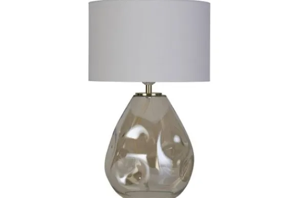 Tafellamp Devon van het merk Searchlight is uniek in zijn soort. De lamp geeft je interieur net dat beetje meer sfeer en is een lust voor het oog met zijn champangekleurige glas met een snoer erin en de beige lampenkap. Waar je hem ook zet, deze tafellamp past overal binnen elk soort interieur. De lamp is exclusief lichtbron. De LEDlichtbron E27 fitting is geschikt voor deze lamp. Kies zelf je eigen uit die bij jouw past.