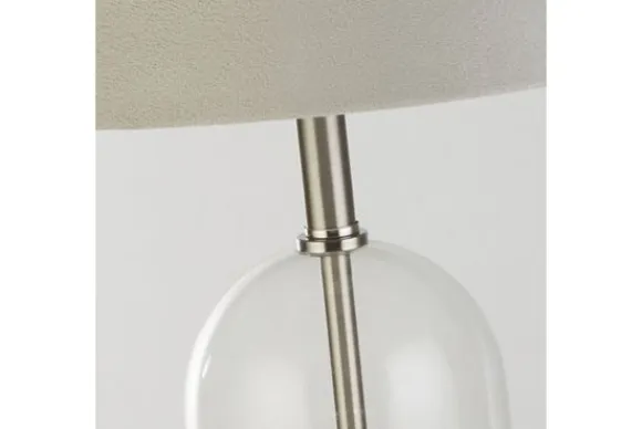 Tafellamp Oxford EU81713GY van het merk Searchlight is een luxueuze lamp met een metalen voetstuk dat in een glazen stolp zit. De lampenkap is van grijs velvet, de binnenkant is zilver gekleurd voor een elegant effect.