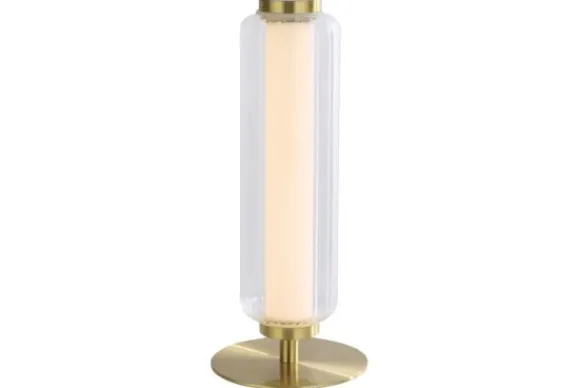 Tafellamp Mod van het merk Searchlight is een opvallende lamp die de warmte van messing combineert met een modern design. Het goudkleurige metalen messing geeft de lamp een industriële chique uitstraling, terwijl de doorzichtige geribbelde glazen lampenkap een uniek textuurelement toevoegt. Wanneer de tafellamp aanstaat zorgt de geribbelde glazen lampenkap voor een prachtig spel van licht en schaduw, waardoor diepte en dimensie aan de woonruimte wordt toegevoegd. Hiermee kan ook gespeeld worden, door de lamp eenvoudig te dimmen via de wandschakelaar.