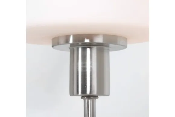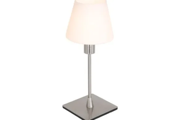 Tafellamp Ancilla van het merk Steinhauer is een elegante stalen tafellamp met een kap van opaal wit glas. Het tijdloze ontwerp maakt de lamp geschikt voor diverse interieurstijlen.