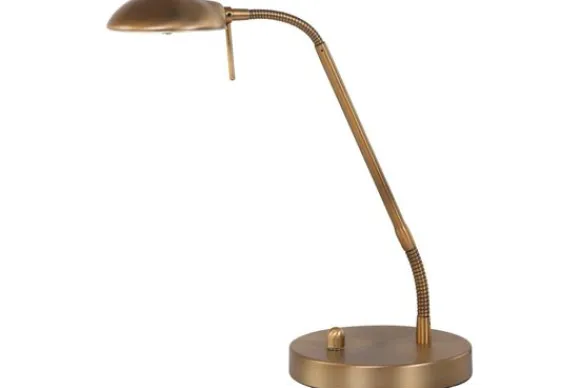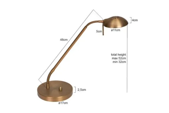 Tafellamp 7502BR Biron van het merk Mexlite is vervaardigd van bronskleurig geborsteld staal. De lamp is voorzien van een 8 Watt LED lichtbron, welke gedimd kan worden door middel van de draaidimmer. De kleurtemperatuur van de lichtbron is 2700 Kelvin met een lichtopbrengst van 650 Lumen. De leesarm is 48 cm lang en voorzien van twee buigveren, waardoor de lamp naar wens in te stellen is. De lamp wordt geleverd inclusief snoer van 185 cm.