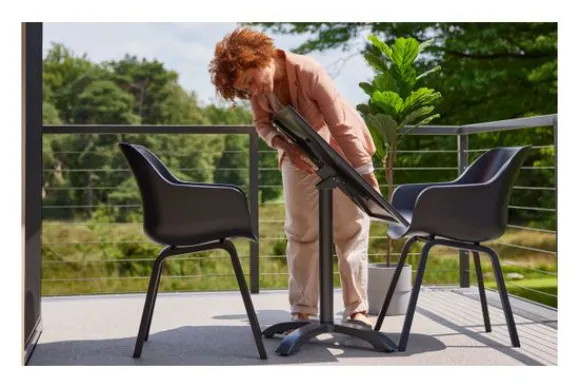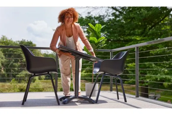 Tuintafel Sophie Flip 65.918.108 van het merk Hartman zijn leuke bistrotafeltjes die zijn te combineren met de Sophie stoelen en tafels. Een klein balkon of een terras? Deze inklapbare bistrotafeltjes zijn een uitvinding. Handig in te klappen en op te bergen. De top is vervaardigd uit HPL en het onderstel uit aluminium. Onderhoudsarme en duurzame materialen.
