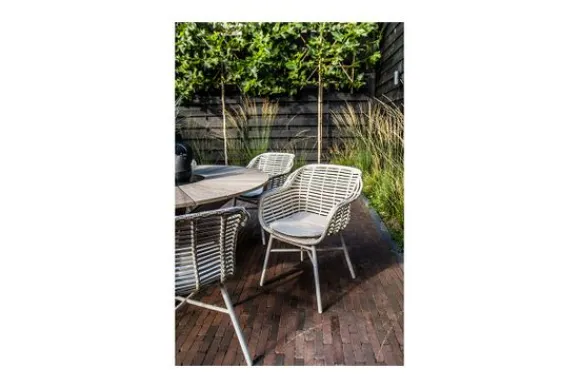 Deze tuinstoel wordt standaard geleverd zonder het zitkussen, deze is te bestellen onder ”extra opties”.