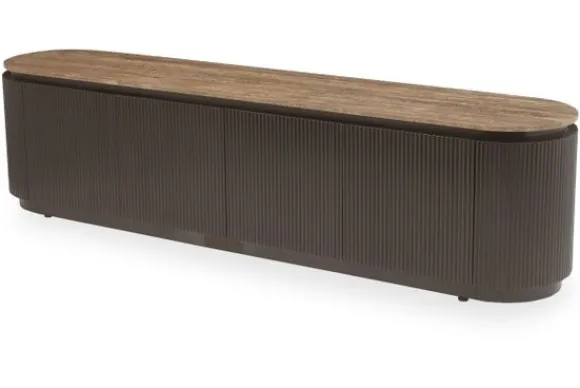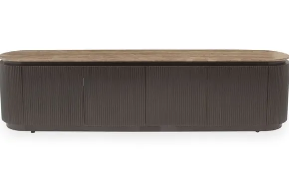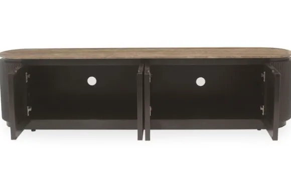 Tv-meubel Russo 214318 van het merk Richmond Interiors is een stijlvolle blikvanger met een natuurlijke charme. De afgeronde vormen en het verfijnde lijnenspel in de kastdeuren zorgen voor een speels effect.