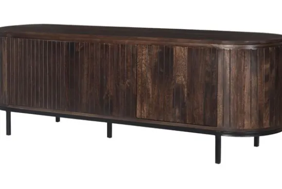 van het merk Livingfurn is een modern tv-meubel met een rustige uitstraling. Het meubel is opgebouwd uit verticale houten plankjes van mangohout. Dit zorgt voor een duidelijk lijnenspel en een natuurlijke look die goed past in verschillende interieurs.