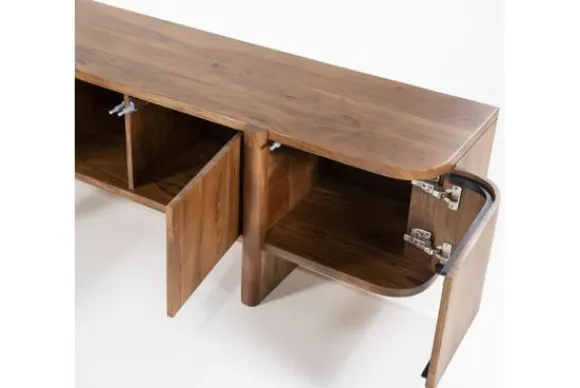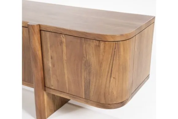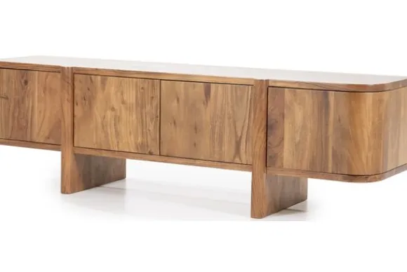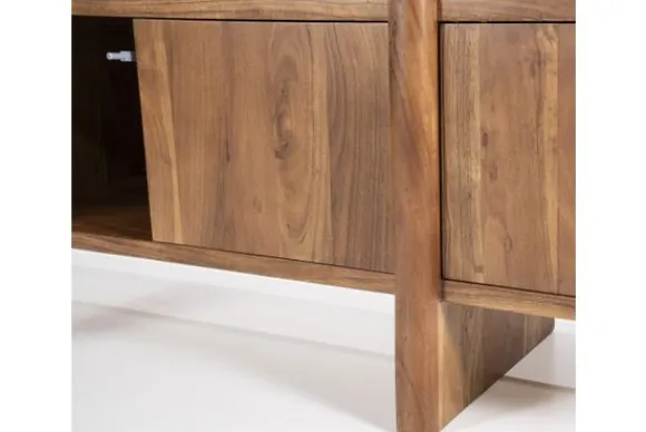 Het tv-meubel is gemaakt van acaciahout. Dit is een harde houtsoort die goed bestand is tegen dagelijks gebruik. De fijne nerfstructuur van het hout blijft zichtbaar en geeft het meubel een natuurlijke uitstraling.