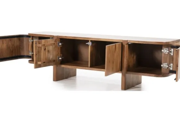 Het tv-meubel is voorzien van vier deuren. Achter de deuren bevindt zich ruime opbergruimte om apparatuur en spullen netjes uit het zicht te houden. Dit meubelstuk maakt deel uit van een complete .