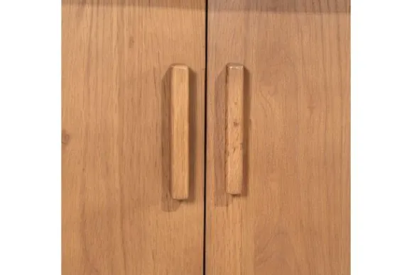 De deuren zijn voorzien van een handgreep en hebben een strakke en nette uitstraling. Hierdoor combineert het meubel een mooi uiterlijk met praktische functies. Het tv-meubel biedt opbergruimte en houdt de woonkamer overzichtelijk, terwijl het tegelijk een stijlvolle toevoeging aan het interieur vormt.