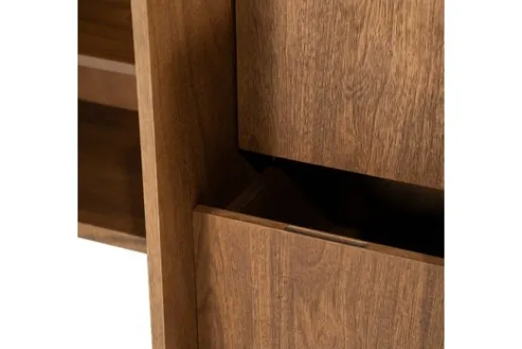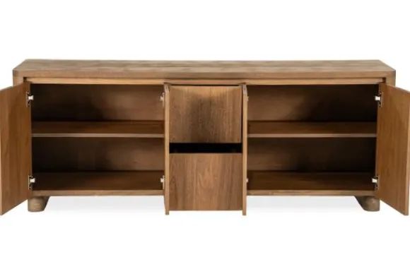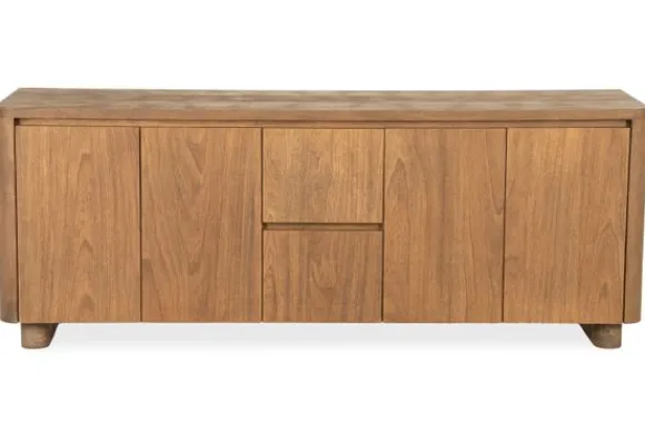 De strakke lijnen, verzonken grepen en afgeronde hoeken zorgen voor een zacht, hedendaags silhouet. Achter de vijf deuren en twee lades gaat een zee aan opbergruimte schuil, perfect voor het stijlvol wegwerken van servies, documenten of elektronica.