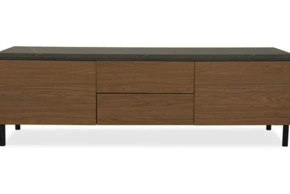 Monteer het tv-meubel hangend voor een strak effect of kies voor 12 cm hoge poten voor een luchtige look.