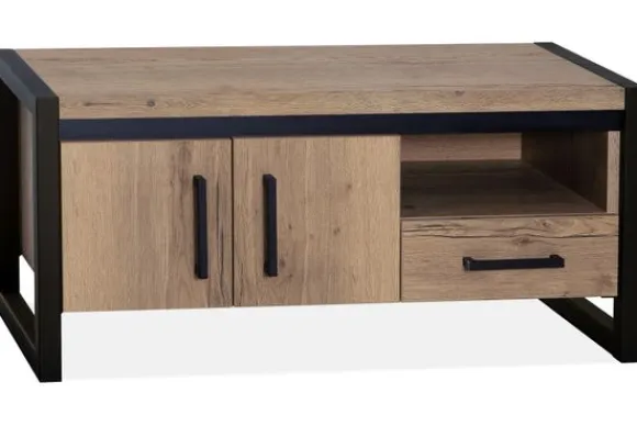 Het tv-meubel is voorzien van twee deuren, één lade en één open vak. Deze indeling biedt ruimte voor media-apparatuur, kabels en accessoires. Het open vak is geschikt voor een mediabox, terwijl je andere spullen netjes uit het zicht opbergt.