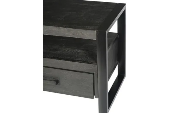 Tv-meubel Norris is gemaakt van mangohout in combinatie met gecoat staal in de kleur zwart. Mangohout is een duurzame houtsoort met een fijne nerfstructuur, waarbij ieder meubel een eigen karakter heeft. Het materiaal is sterk en geschikt voor dagelijks gebruik.