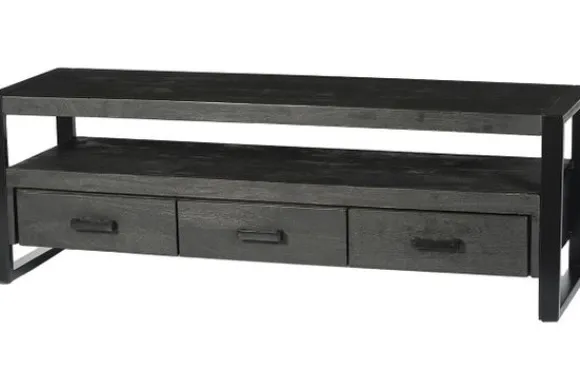 Tv-meubel Norris is gemaakt van mangohout in combinatie met gecoat staal in de kleur zwart. Mangohout is een duurzame houtsoort met een fijne nerfstructuur, waarbij ieder meubel een eigen karakter heeft. Het materiaal is sterk en geschikt voor dagelijks gebruik.