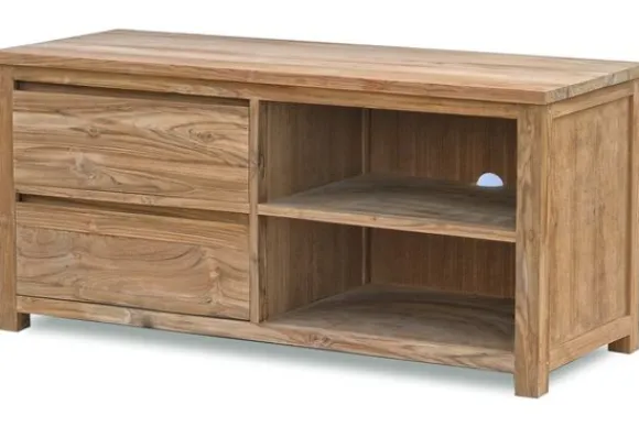 Tv-meubel Corona RN 0032 van het merk Tower Living wordt geleverd zoals afgebeeld. De Corona collectie kenmerkt zich door zijn gebruik van teakhout. Deze uit Azië afkomstige houtsoort is zeer duurzaam en daarnaast ook zeer stevig. De tafels en dressoirs van de Corona serie zijn onbewerkt en fijn geschuurd. Daarnaast worden de tafels en kasten in de natuurlijke teakkleur geleverd.