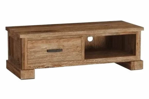 Tv-meubel Lorenzo SS 0857 van het merk Tower Living is gemaakt van Teak hout. Deze uit Azië afkomstige houtsoort is zeer duurzaam en daarnaast ook stevig. Het model is afgewerkt met Driftwood hout, waardoor de kast een fraaier uiterlijk heeft. Met een meubel uit de Lorenzo collectie haal je pure kwaliteit in huis voor een klein prijsje.
