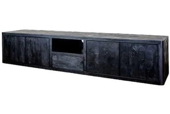 Tv-meubel Tenna NL 0083 van het merk Tower Living is gemaakt van licht geborsteld massief mangohout. Mangohout staat bekend om de natuurlijke kleurschakeringen en kleine ongelijkheden in het oppervlak, waardoor elk meubelstuk een eigen uitstraling heeft. De tinten variëren van licht tot donker en het hout is bovendien een duurzame keuze.