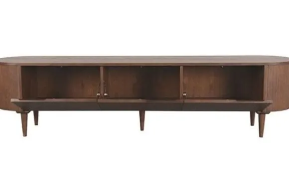 Tv-meubel Oliva Walnoot ME-70.007 van het merk LABEL51 is een prachtig meubel uitgevoerd in eikenfineer. Een speels vormgegeven meubel waar al jouw spullen stijlvol in kunnen worden opgeborgen. Het tv-meubel is verdeeld in drie vakken, die ieder zijn afgesloten met een klep. Doordat de kleppen zijn voorzien van een druksysteem, krijgt het meubel een elegante look. De hoge poten geven het tv-meubel een luchtige uitstraling.