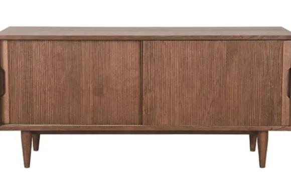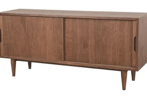 Tv-meubel Jule Walnoot ME-70.033 van het merk LABEL51 is een strak meubel, uitgevoerd in walnoot kleurig eikenfineer. Naast deze kleur is de Jule ook verkrijgbaar in de kleur Naturel. Een slim vormgegeven meubel waar op stijlvolle wijze spullen in opgeborgen kunnen worden. De fijn groeven op de deurtjes en lades van het tv-meubel accentueren op subtiele wijze het speelse karakter. Het tv-meubel heeft een vak met twee schuifdeuren ervoor. De kegelvormige poten geven het meubel een luchtige uitstraling.