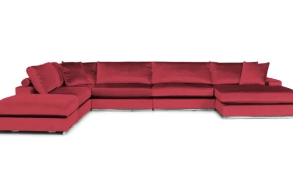 Bankstel Napels wordt standaard uitgevoerd inclusief sierkussens en met unieke chromen buizen onder de bank.