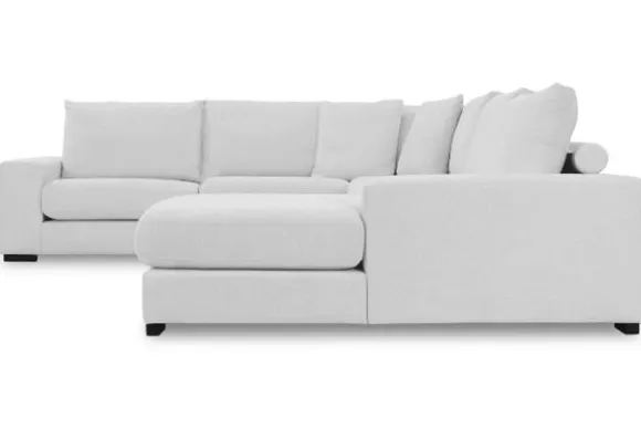 Hoekbank Napels van het merk Be Inspired is snel leverbaar in de opstelling 1+1+hoek+1+1+longchair in de stof Miami 01. Dit is een knusse bank door de losse rugkussens en meegeleverde sierkussens. De rugkussens worden aan de achterkant ondersteund door rollen op de lage rugleuning. Dankzij dit ontwerp voor de rugleuning kan je comfortabel hangen op deze bank en met een sierkussen in je rug kan er ook goed op gezeten worden.