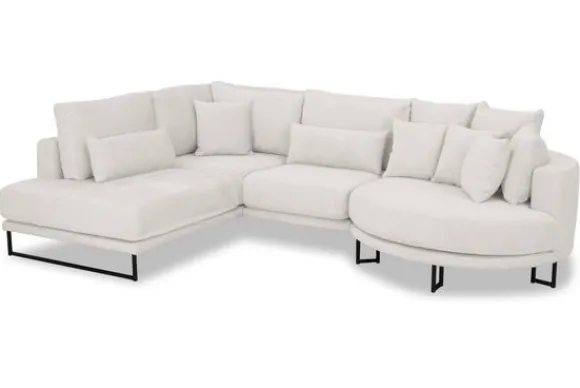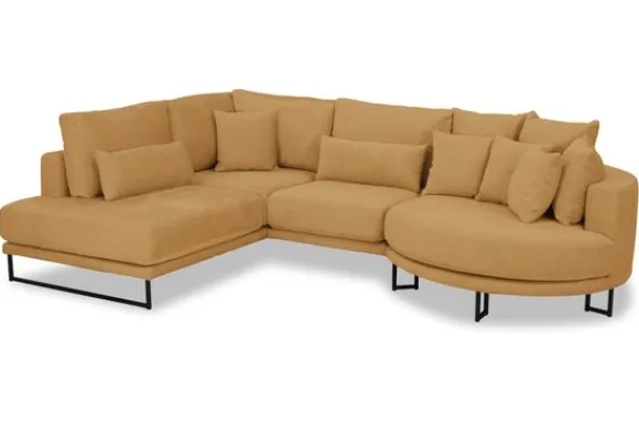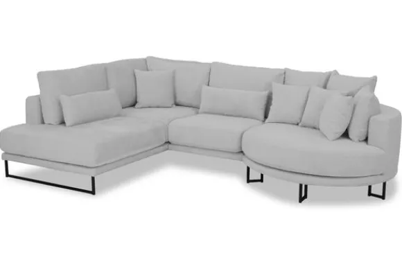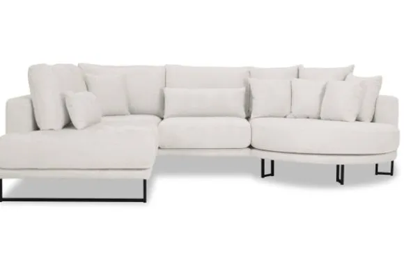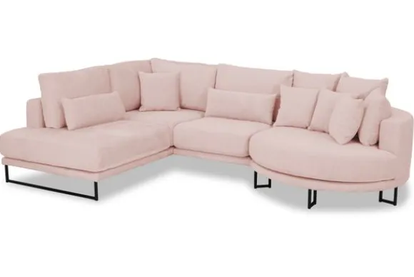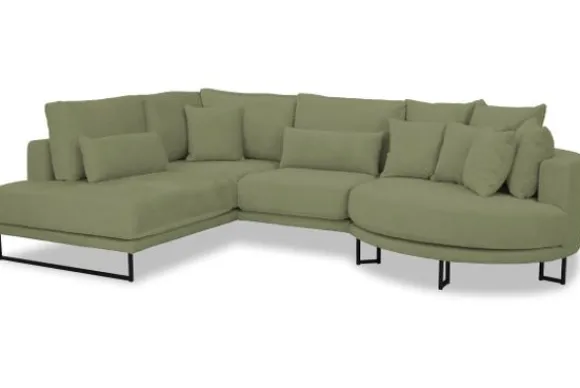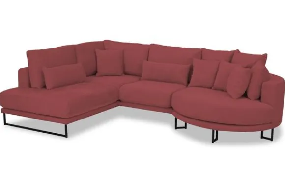Hoekbank Dordoni II van het merk Be Inspired is verkrijgbaar in alle kleuren en in materiaalsoorten zoals ribstof, teddy en velvet. Je kunt kiezen uit diverse afmetingen. De Dordoni II bank wordt standaard uitgevoerd met alle sierkussens en lendekussens die ook op de foto te zien zijn. Je kunt dus lekker wegkruipen tussen alle sierkussens. De rugkussens daarachter zijn lekker hoog, deze combinatie zorgt voor een goede ondersteuning van de rug. Alle rugkussens zitten los en zijn omkeerbaar, de zitkussens zitten vast met klittenband. Deze bank oogt ruimtelijk door de hoge metalen sledepoten.